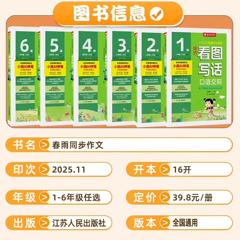 【全国通用】2026春新版春雨教育同步作文小学语文一年级二年级三四五六年级下册上册正版满分作文技法800例素材金句2000例人教版