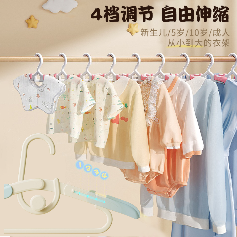 儿童衣架新生婴儿宝宝专用晾衣服架子小孩中童大童挂衣撑伸缩家用