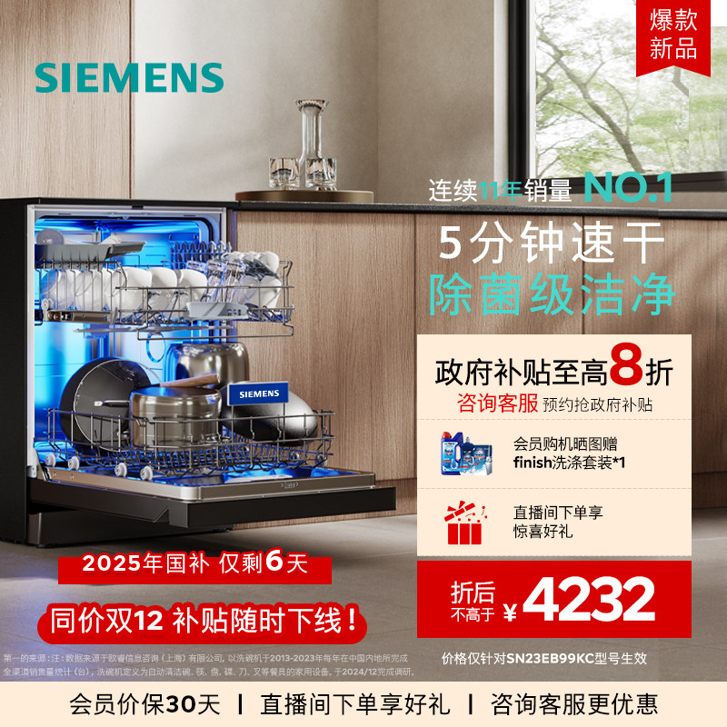 新品|西门子极净魔盒3.0MAX独立嵌入式洗碗机17+3套黑白色EB99