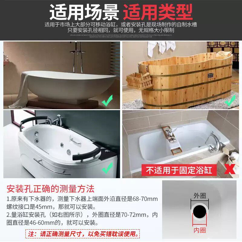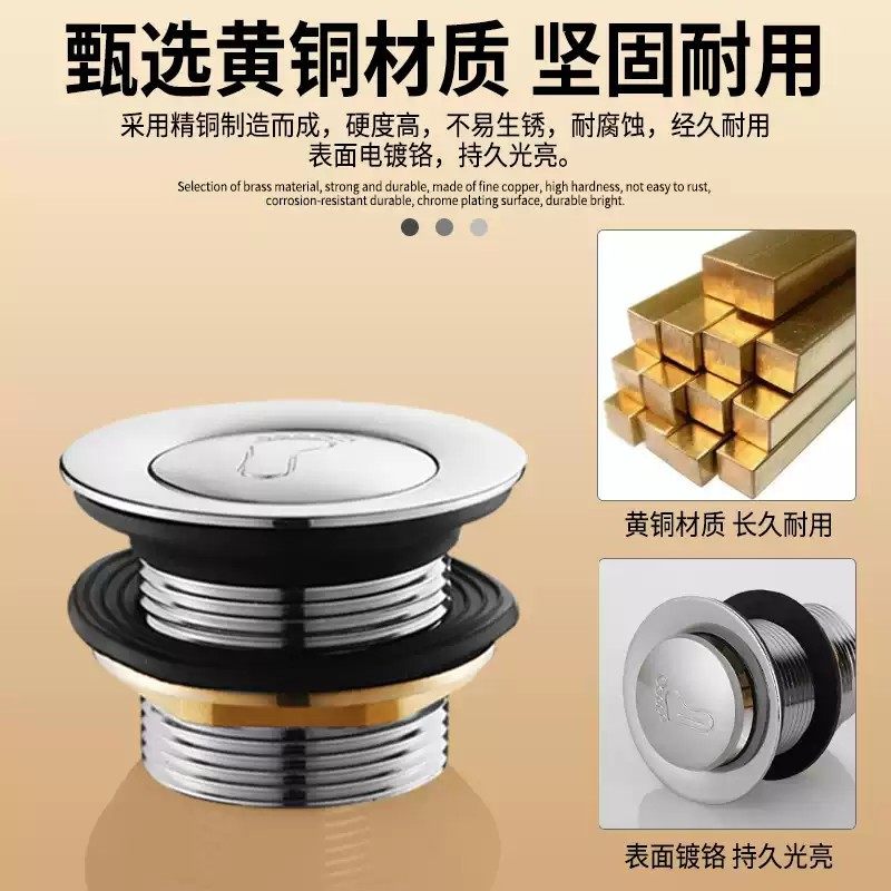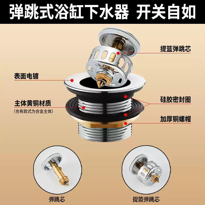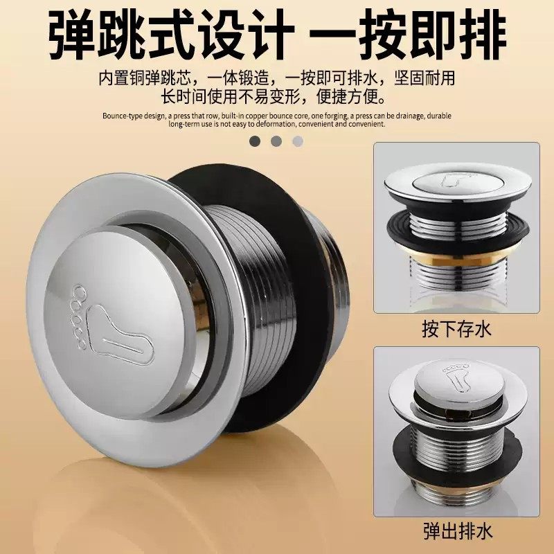 全铜浴盆浴缸下水器弹跳芯脚踩式淋浴房排水器木桶阀门排水管配件