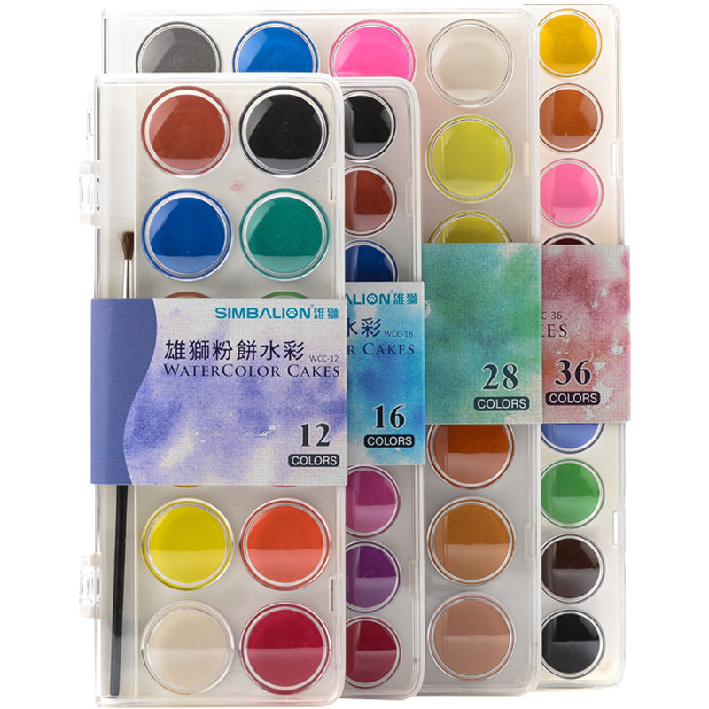 雄狮粉饼水彩12色16色28色36色写生粉饼固体水彩颜料初学者儿童水彩粉饼颜料套装