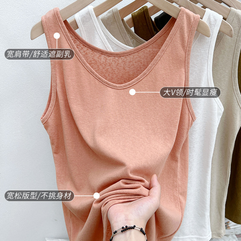 莫代尔外穿带胸垫吊带背心女夏v领打底内搭无袖上衣纯色薄款大码