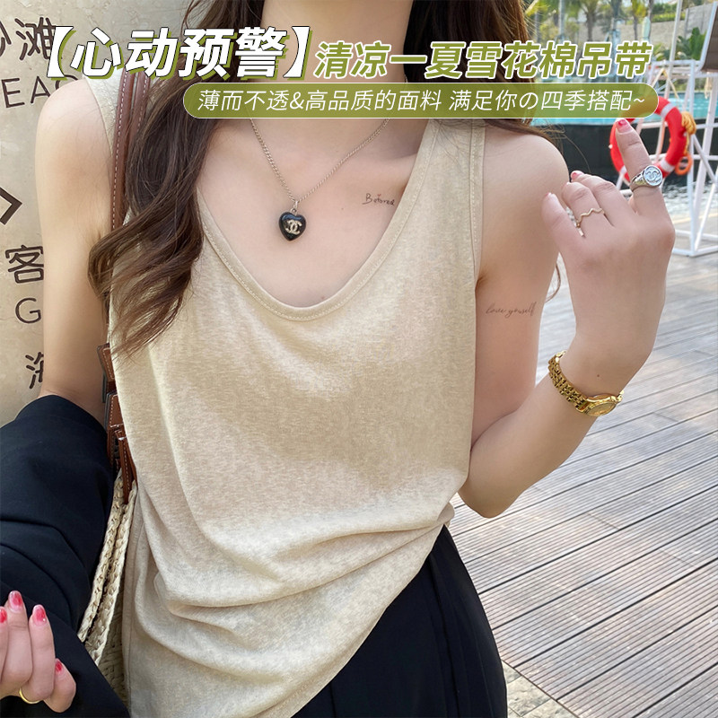 莫代尔吊带背心女夏薄款纯色无袖打底衫修身百搭简约内搭U领上衣