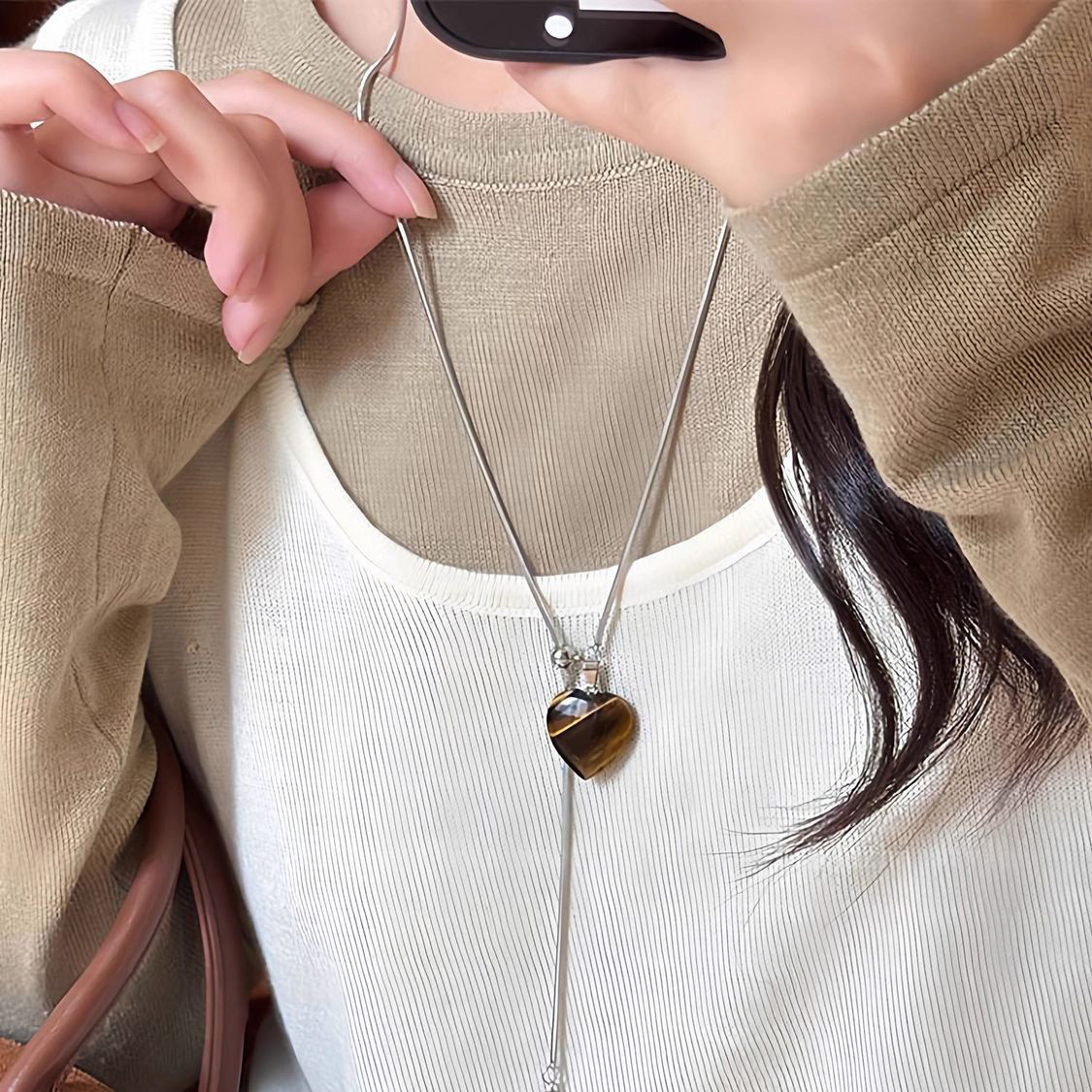美拉德虎眼石长款毛衣链女款2025新款轻奢高级感项链秋冬装饰配饰