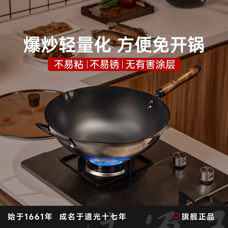 铁锅官方旗舰炒菜锅老式炒锅铁锅家用不粘锅无涂层燃气灶适用