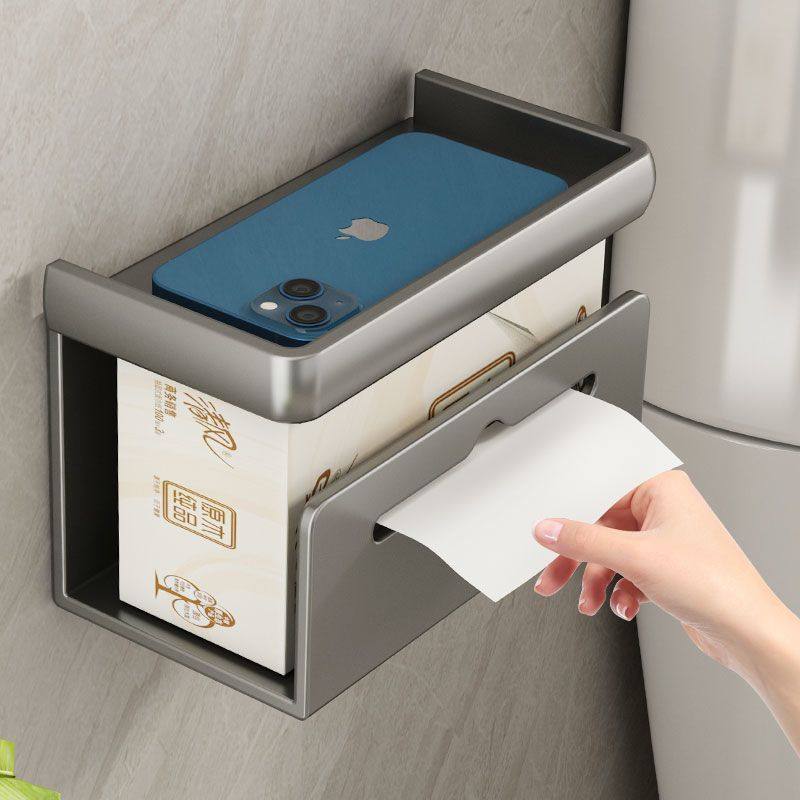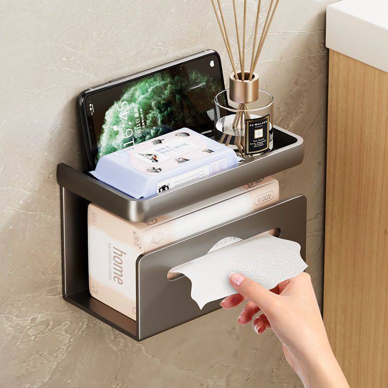 卫生间厕所纸巾盒免打孔卷纸架浴室抽纸盒手机置物架壁挂灰厕纸架