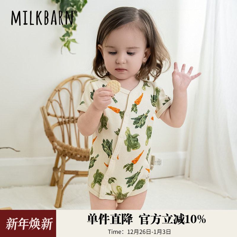 Milkbarn2025春夏新品新生婴儿短袖三角哈衣宝宝包屁衣莫代尔爬服