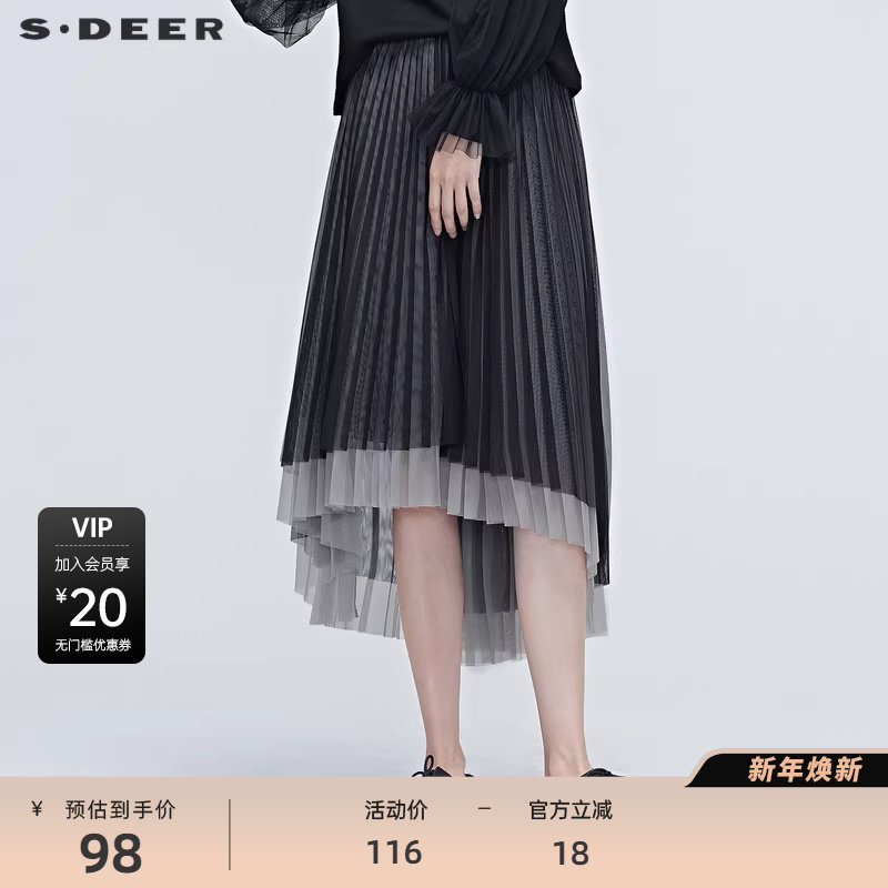 S·DEER圣迪奥女装秋秋季新款时尚层次网纱拼接长裙S20381107