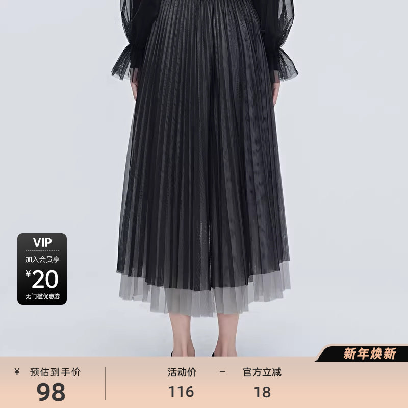 她池松紧腰百褶裙2025秋装新款女装时尚简约中长款A字高腰半身裙