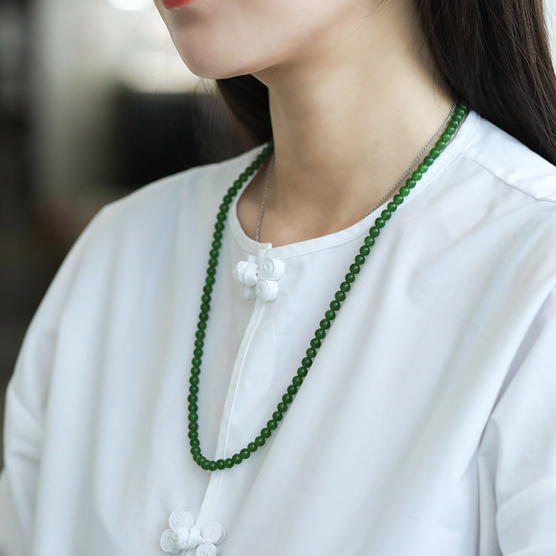 和合玉器和田玉菠菜绿色碧玉0.5珠珠串圆珠项链吊坠女士节日礼物