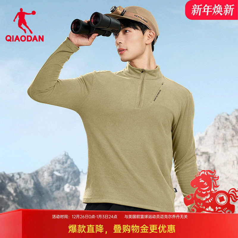 乔丹加绒长袖T恤男士修身打底衫2025新款立领抓绒衣运动服上衣男