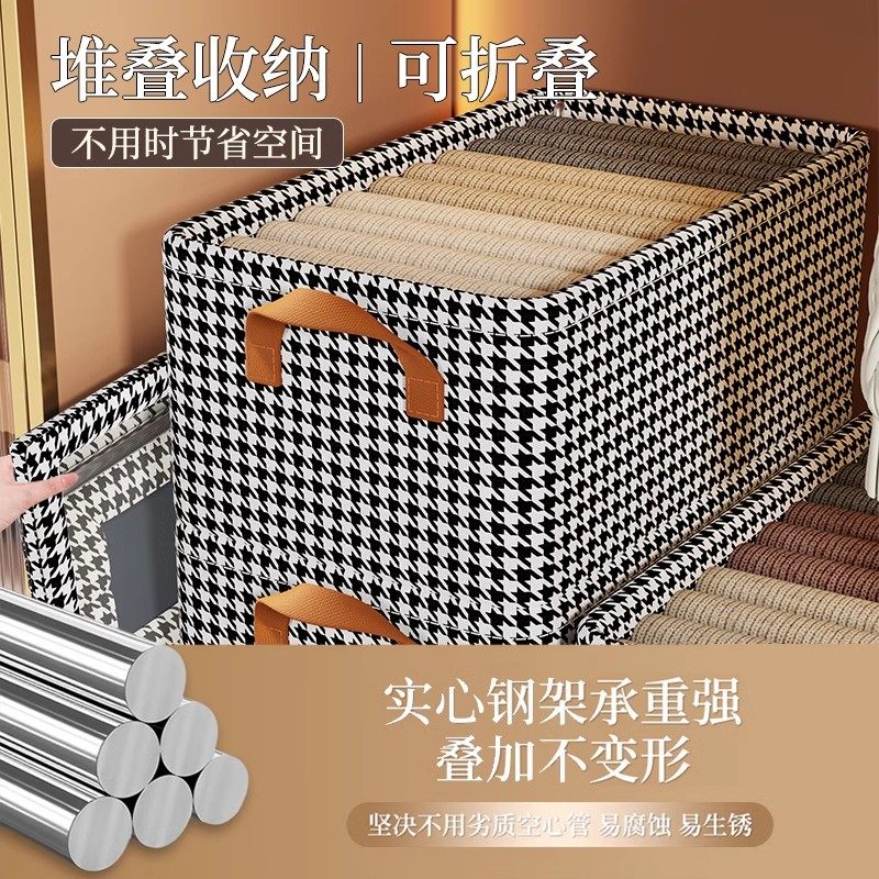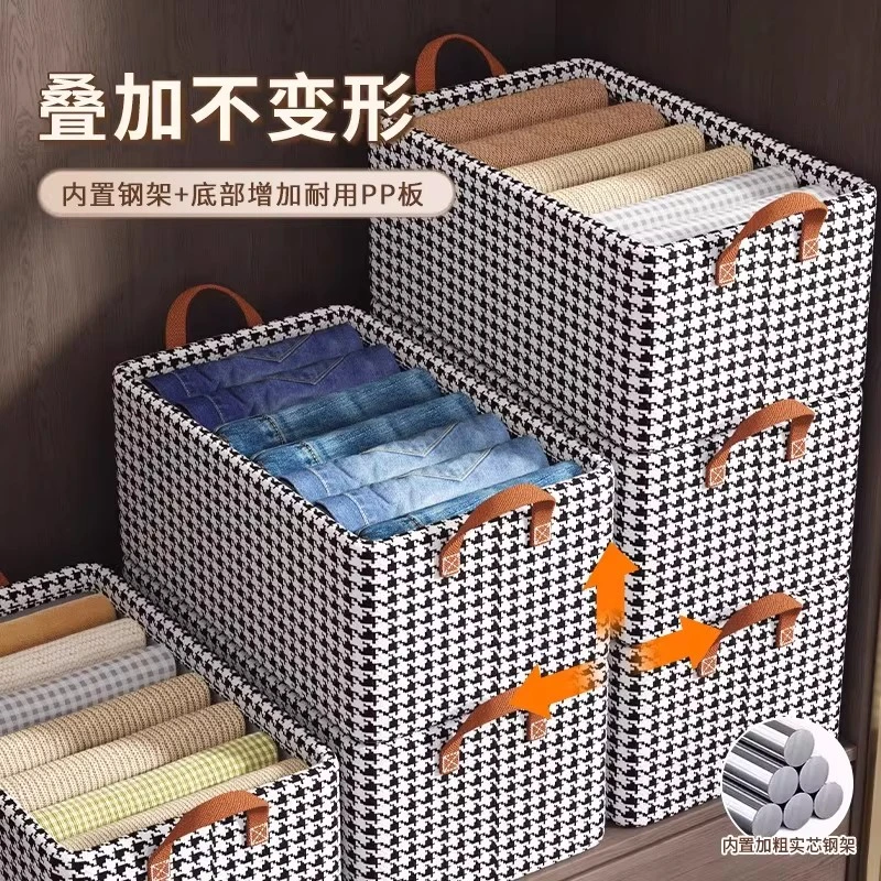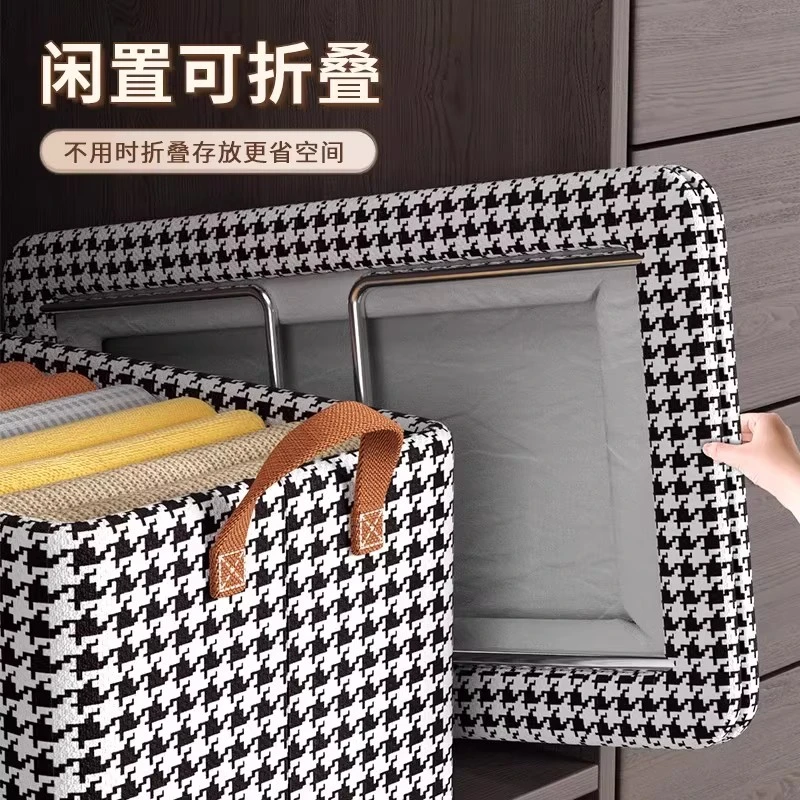 衣服收纳箱千鸟格家用衣柜分层整理收纳神器放衣物布艺折叠收纳筐