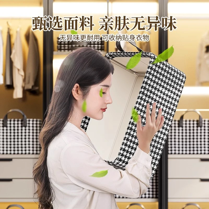 千鸟格衣服收纳盒放衣柜分层收纳箱家用折叠整理盒收纳筐储物盒