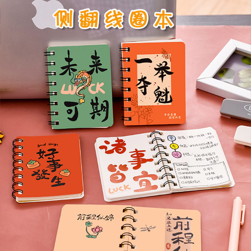 A7书法文字侧翻线圈本 学生活页口袋小本子高颜值古风励志笔记本