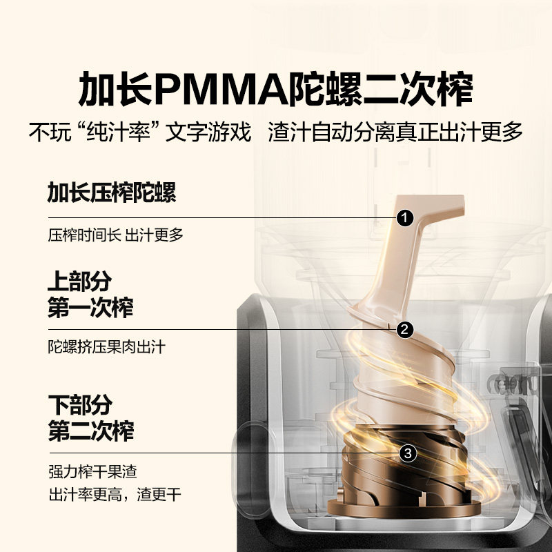 美的榨汁机小型家用全自动果汁榨汁分离慢磨大口径易清洗原汁机