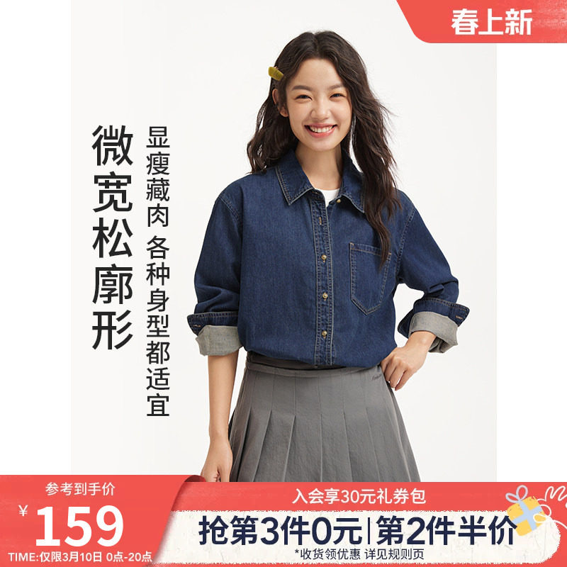 热风2026年春季新款女士松弛复古感基础牛仔衬衫棉感透气经典廓形