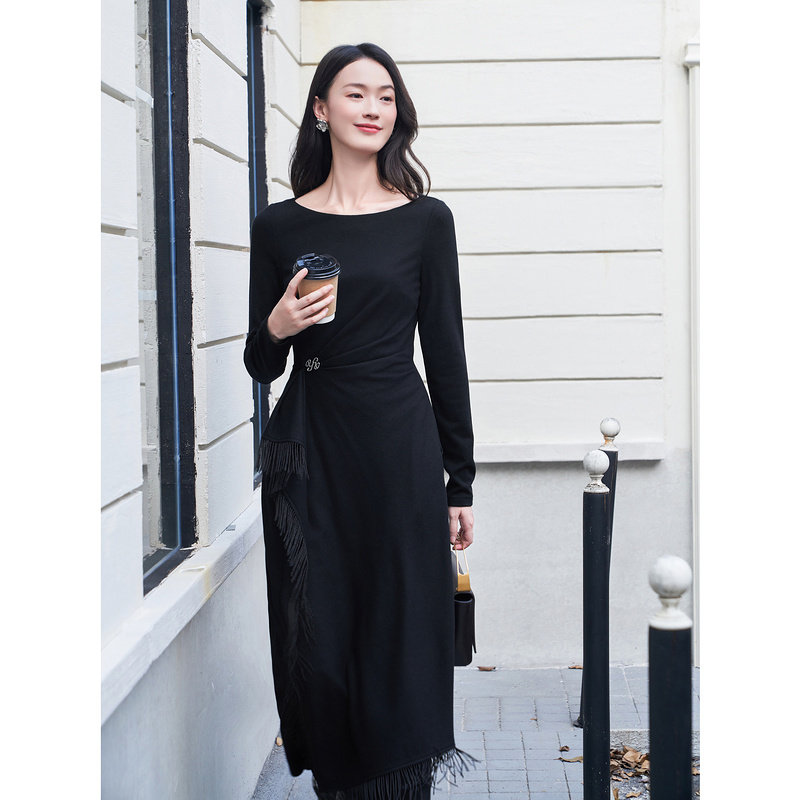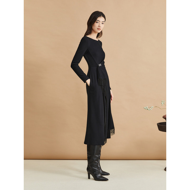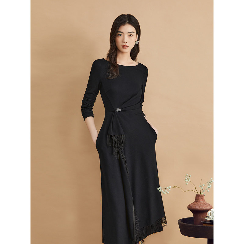 【绵羊毛+羊绒】YINER音儿冬季佩普洛斯艺术皱褶连衣裙