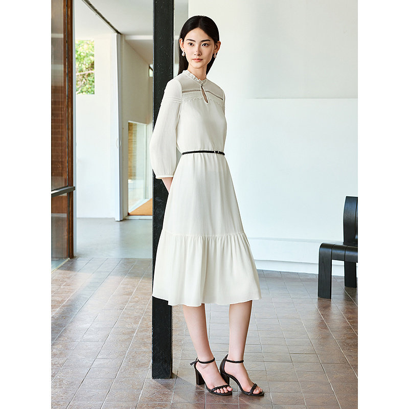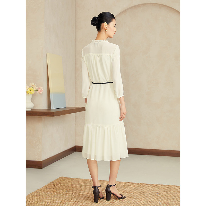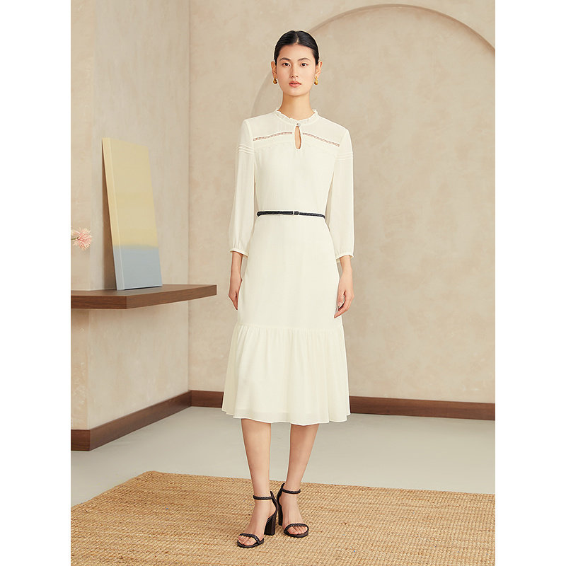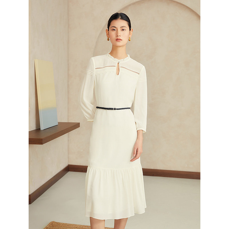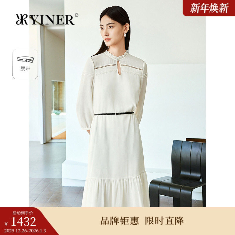 【真丝系列】YINER音儿2025夏季新款100桑蚕丝木耳花边领连衣裙