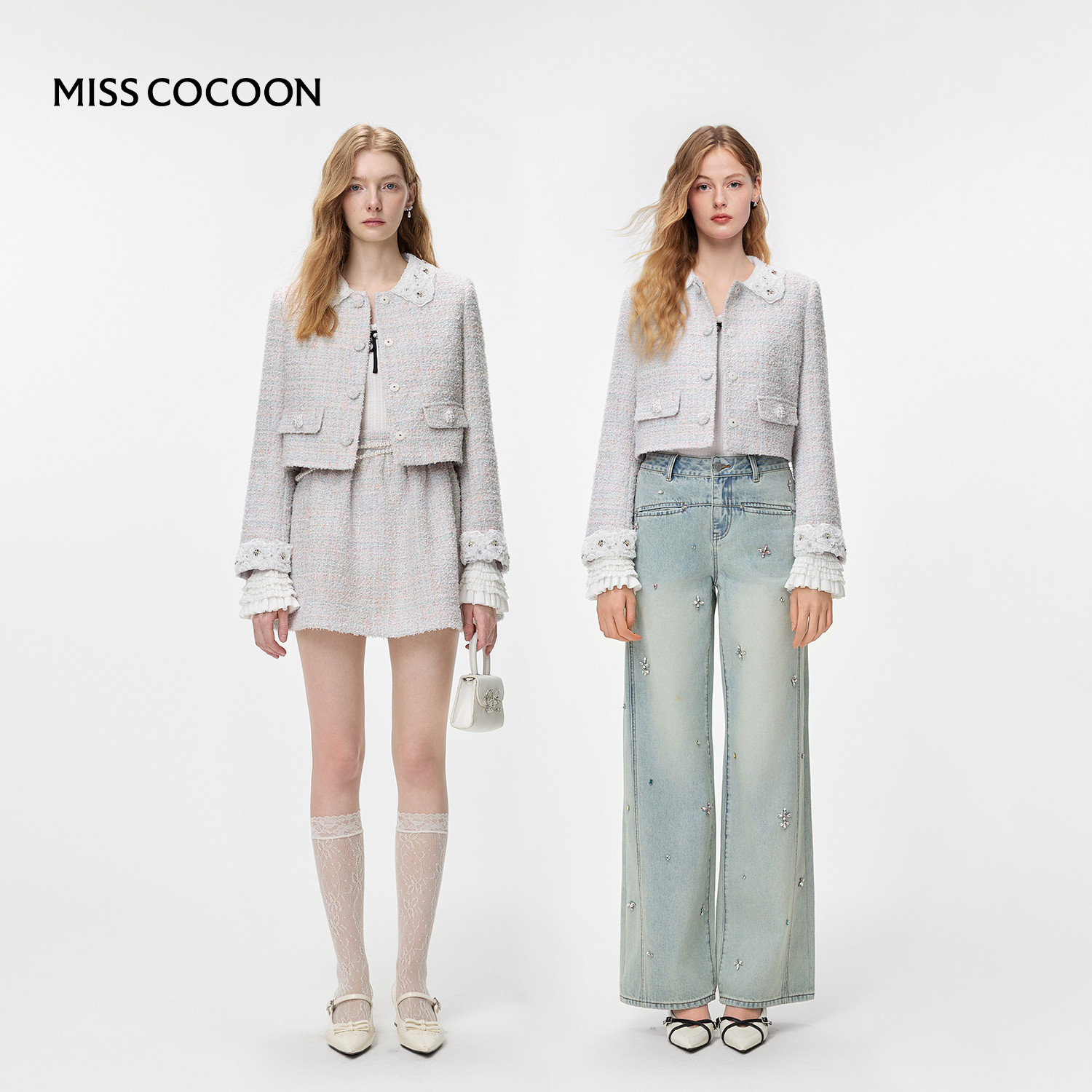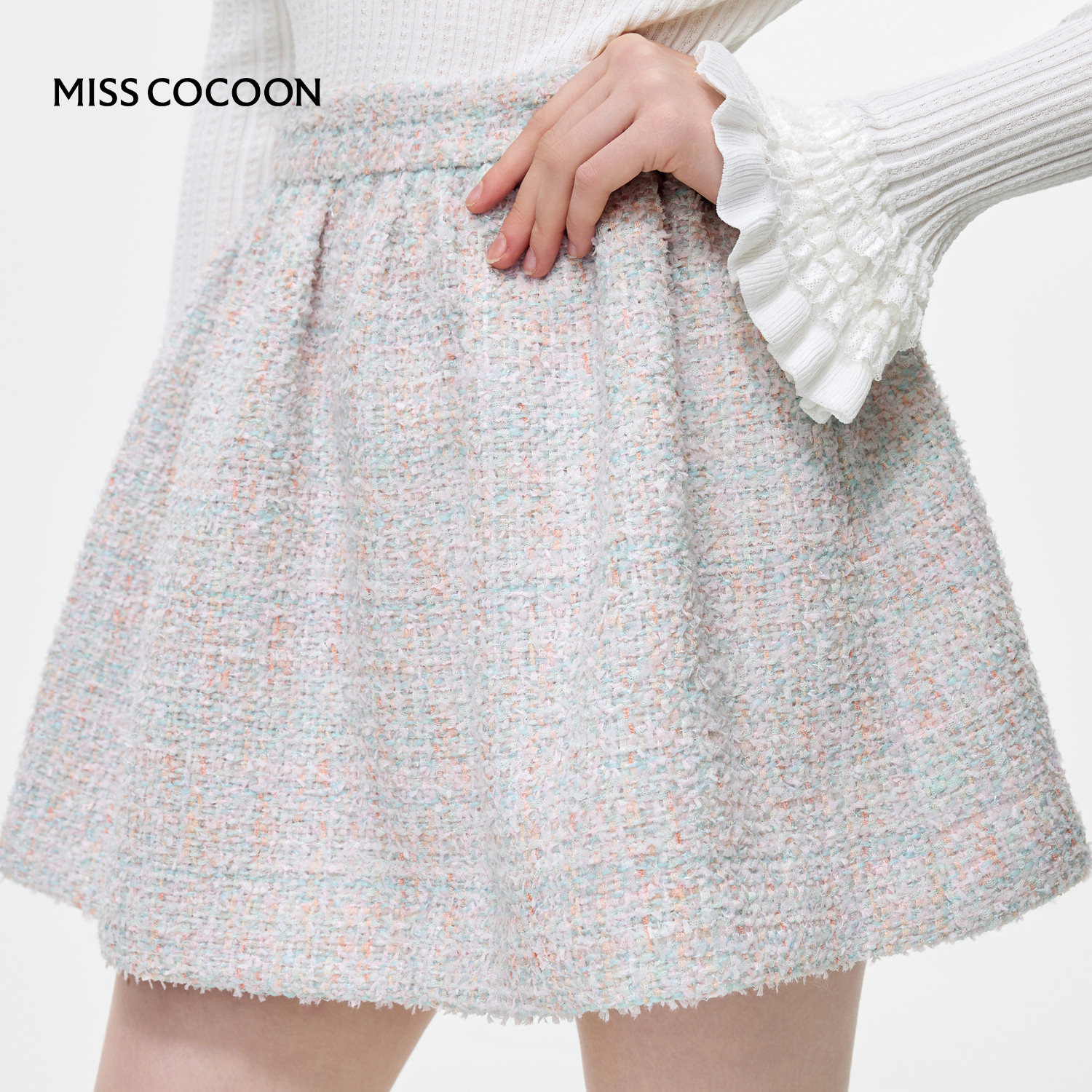 MISSCOCOON可可尼白色修身上衣女2026春季新款千金风粗花呢短外套