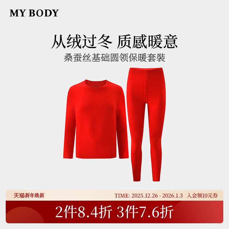 商场同款MYBODY冬季新款保暖内衣男款桑蚕丝基础圆领长袖保暖套裝