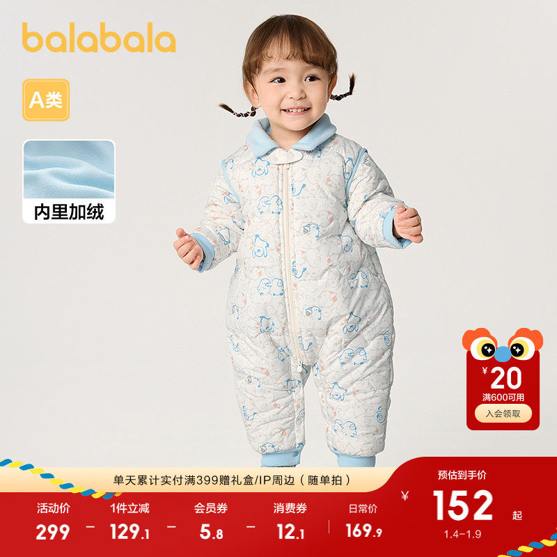 巴拉巴拉童装连体衣婴儿宝宝冬装外出加绒加厚夹棉哈衣爬服可爱萌
