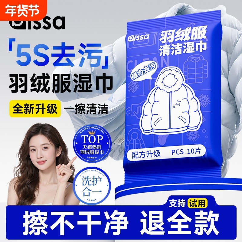 羽绒服免洗清洁湿巾清洗剂干洗强力去污衣物去渍湿纸巾家用便携装