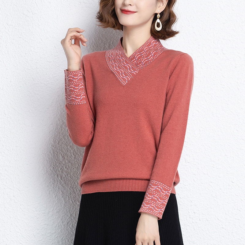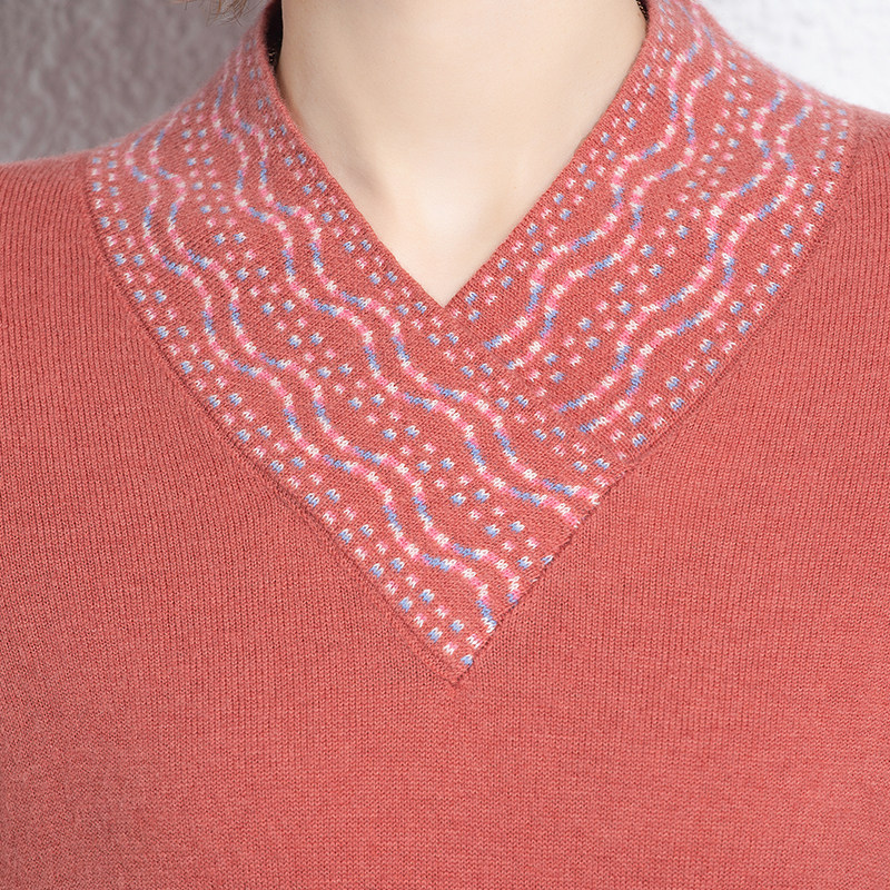 恒源祥新款100%羊毛衫女装显瘦长袖上衣服内搭针织打底衫V领毛衣