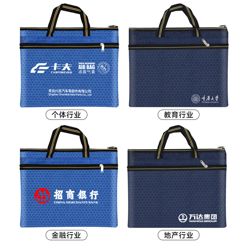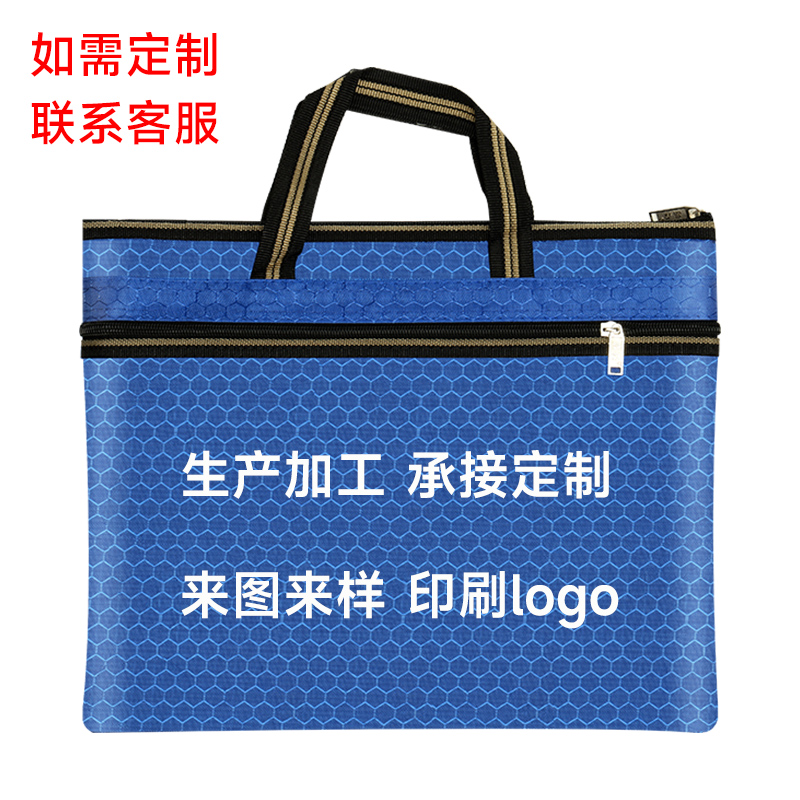 公文包手提袋男款文件袋拉链式双层文件包男士商务通勤防水牛津布办公培训会议外勤简易资料袋帆布定制印logo