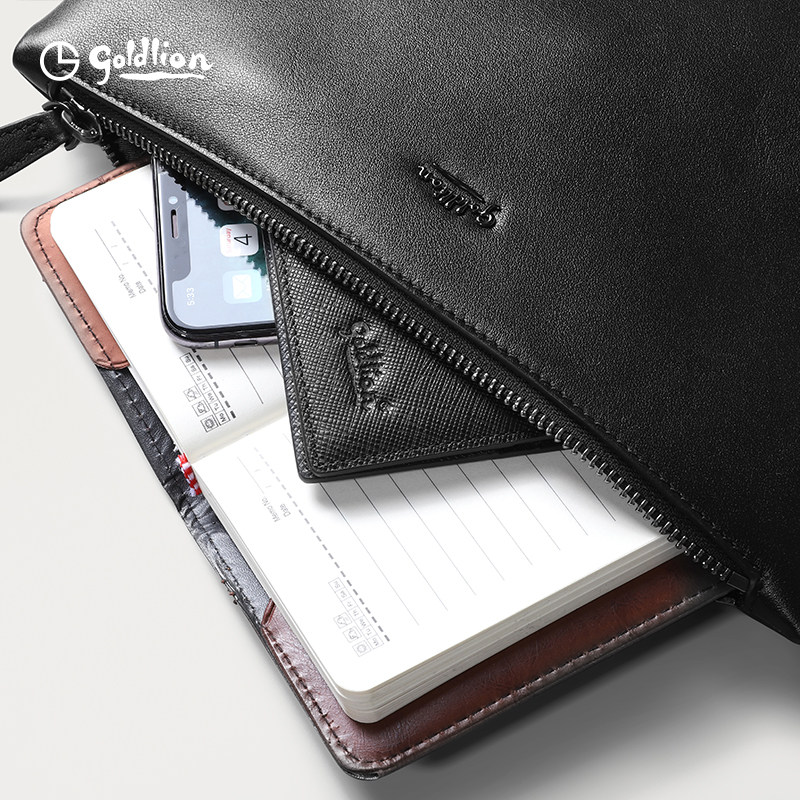 金利来新款皮具男士商务头层牛皮信封包时尚潮流拉链手抓包男