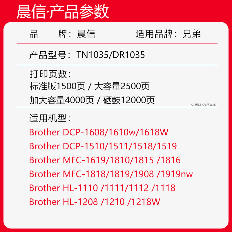 适用兄弟1618w粉盒HL1208 1218 DCP1608打印机硒鼓1908 1919nw联想F2071H M7206 7216nwa LT201 TN1035墨盒