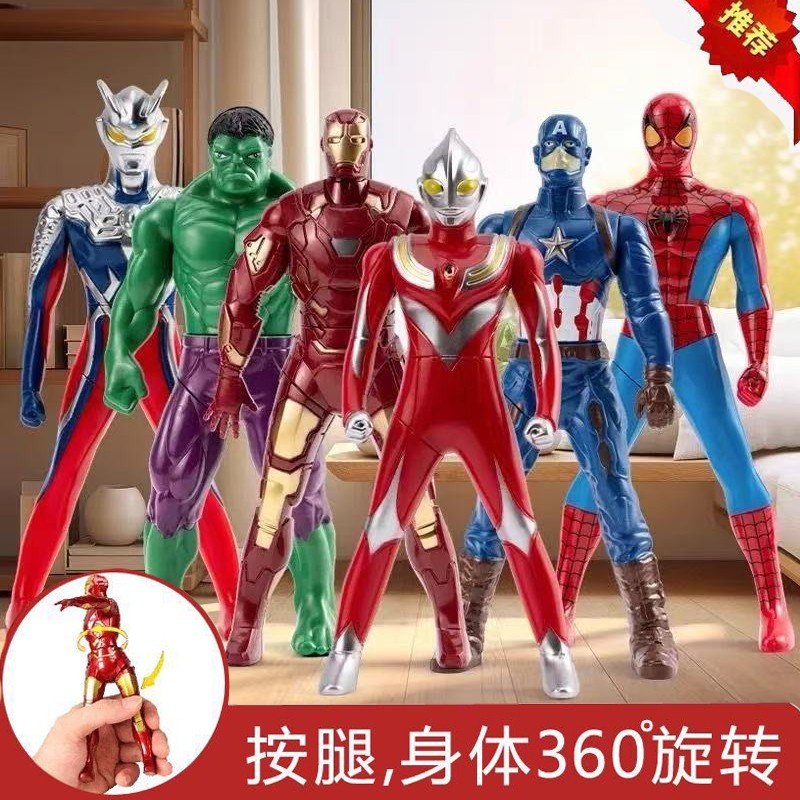 按压旋转玩具奥特蜘蛛侠钢铁侠超人手办关节人偶模型摆件儿童礼品