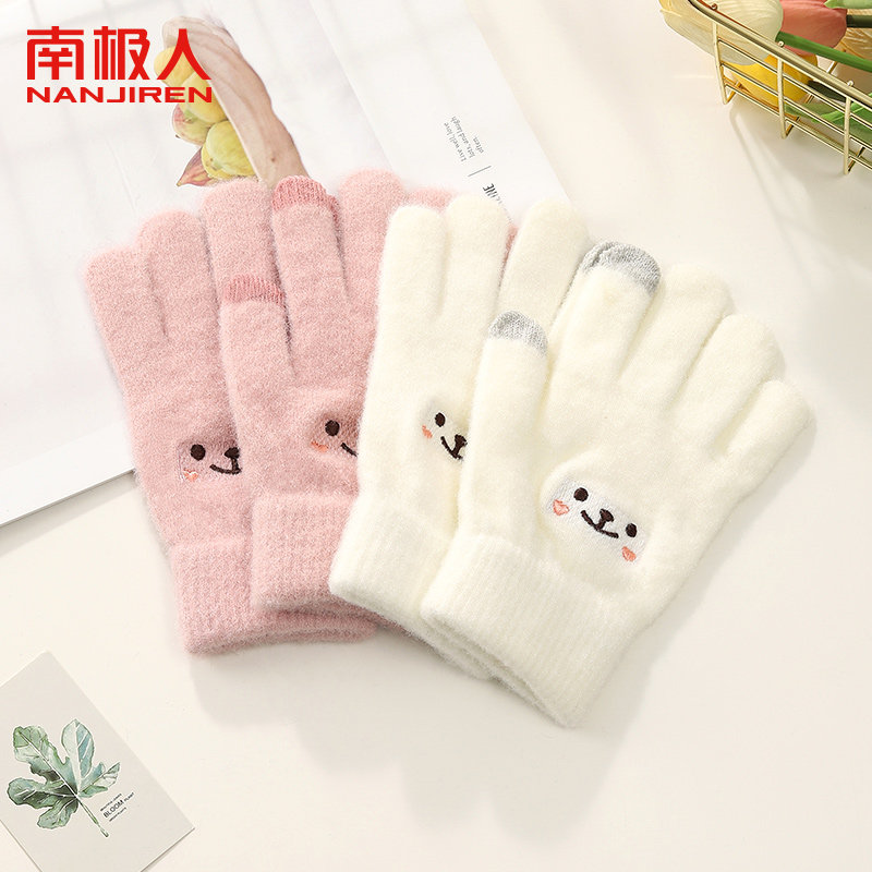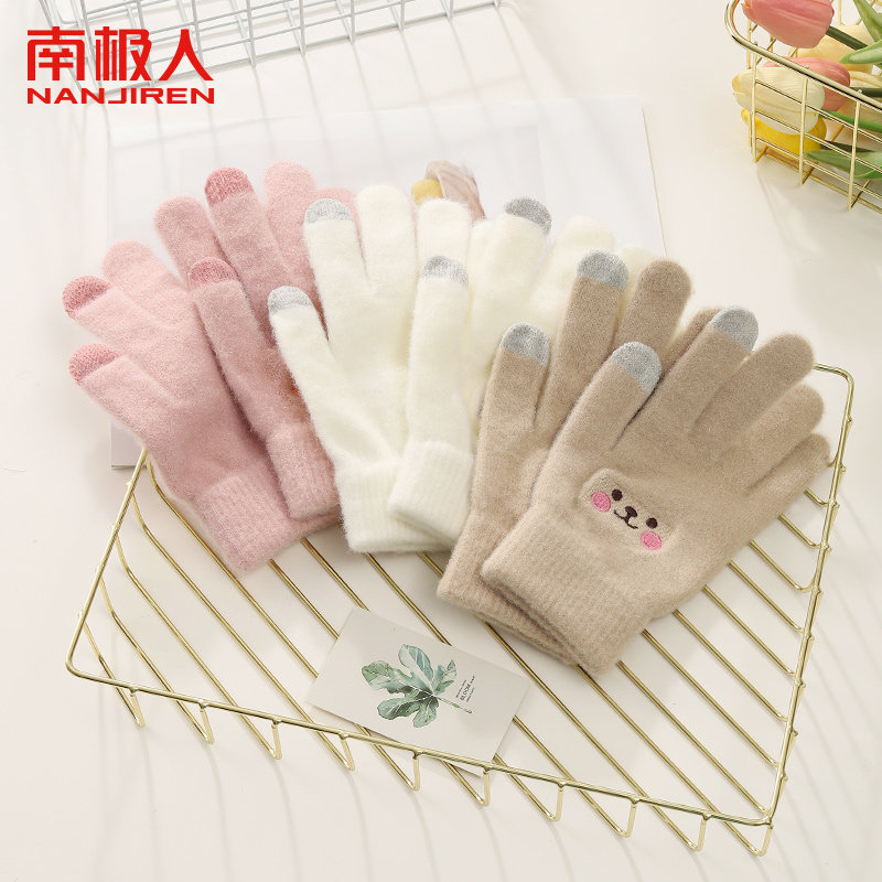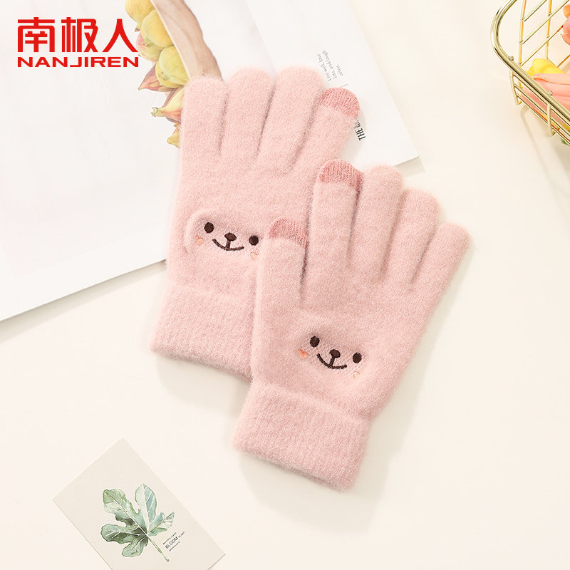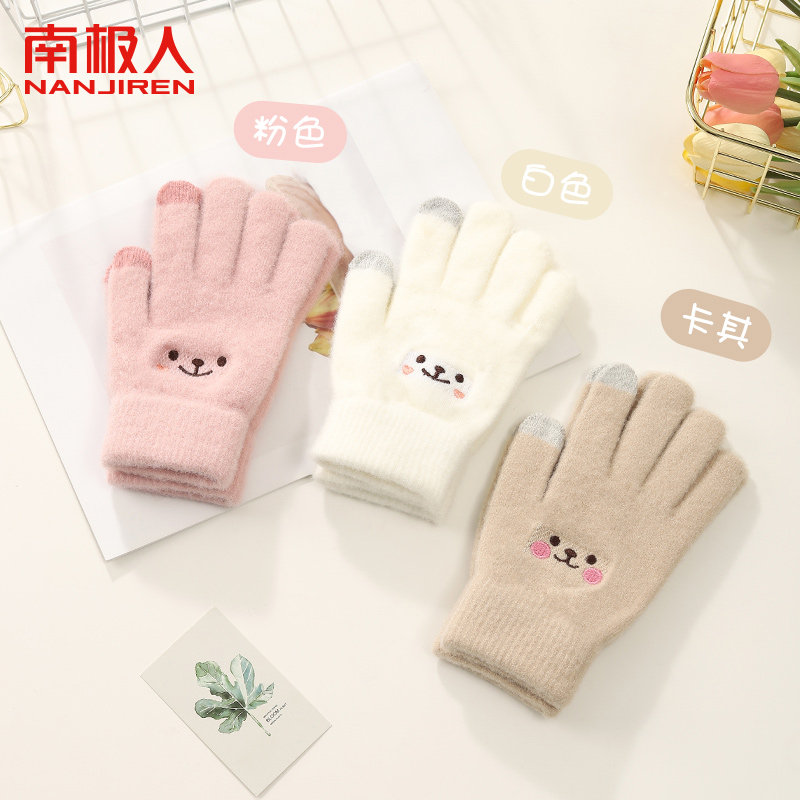 2024新款ins可爱小熊毛线手套女秋冬季保暖针织骑行手套学生写字A