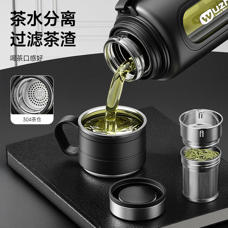 宝选一键开盖水杯车载双层玻璃杯男士泡茶保温速开茶水分离杯茶杯
