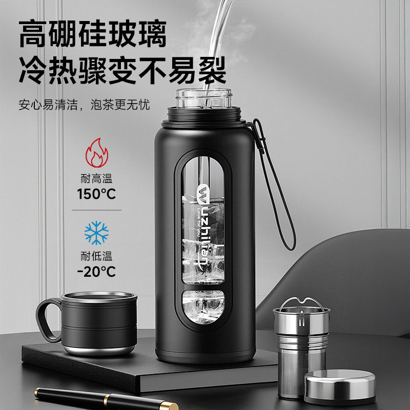 玻璃杯大容量1000ml高硼硅泡茶杯女办公室家用喝水杯子吸管杯新款