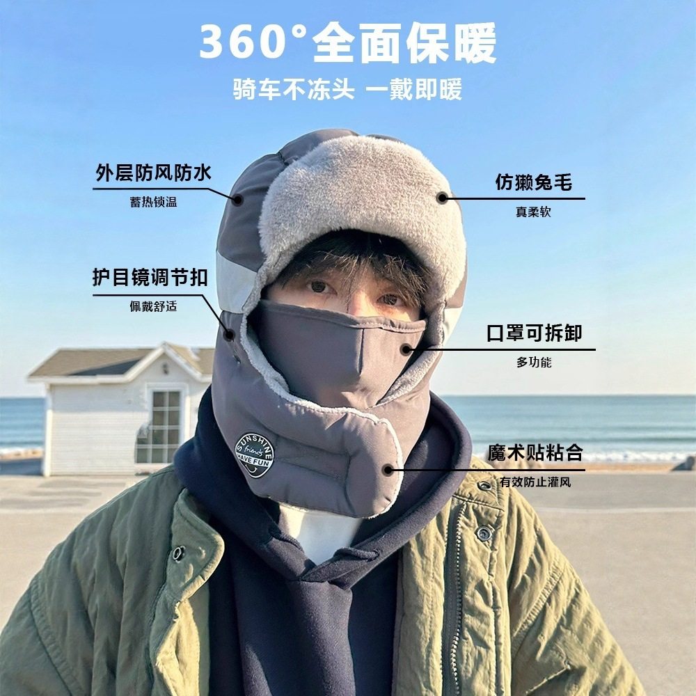 帽子男冬雷锋帽男士男款哈尔滨东北防寒面罩骑车保暖防风棉加绒