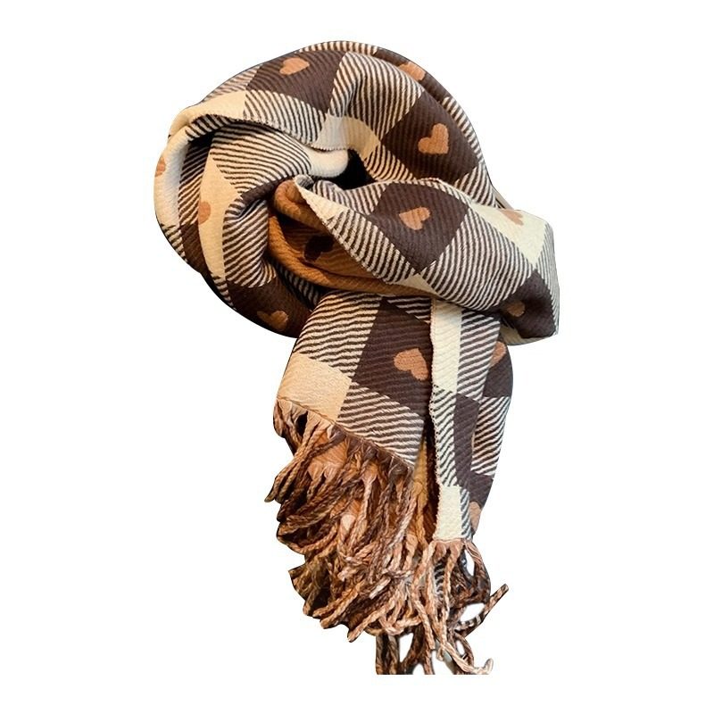 围巾女冬季2025新款仿羊绒爱心格子围脖百搭双面加厚情侣保暖披肩
