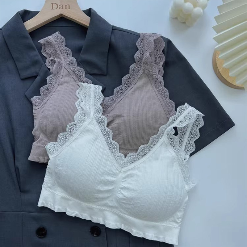 抹胸无钢圈内衣女背心式蕾丝小胸美背内搭运动文胸罩透气聚拢固定