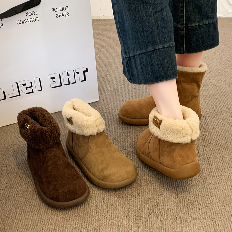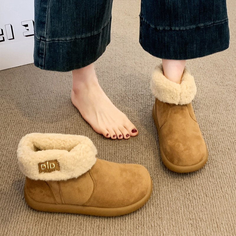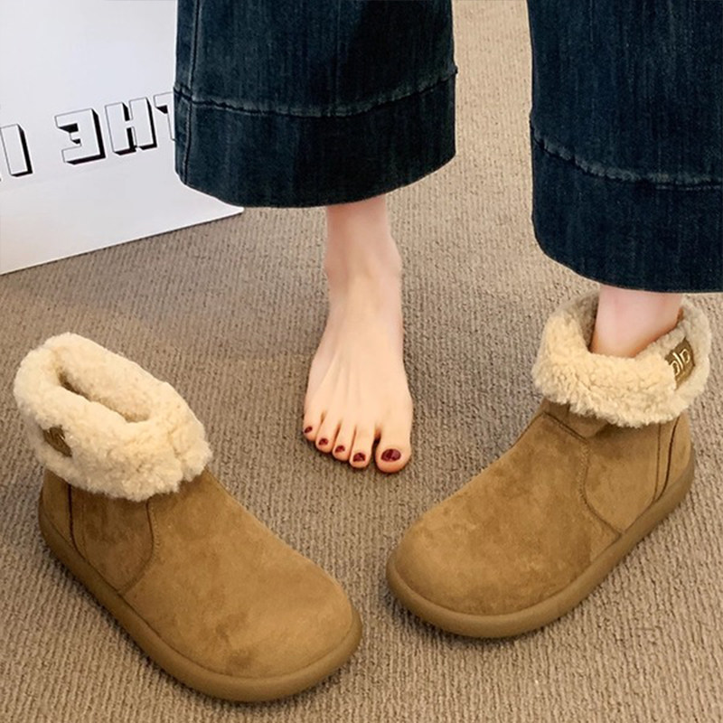 低帮厚底雪地靴女2025新款冬季懒人一脚蹬毛毛棉鞋加绒加厚女鞋子