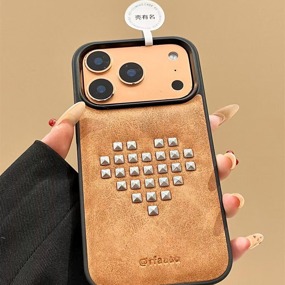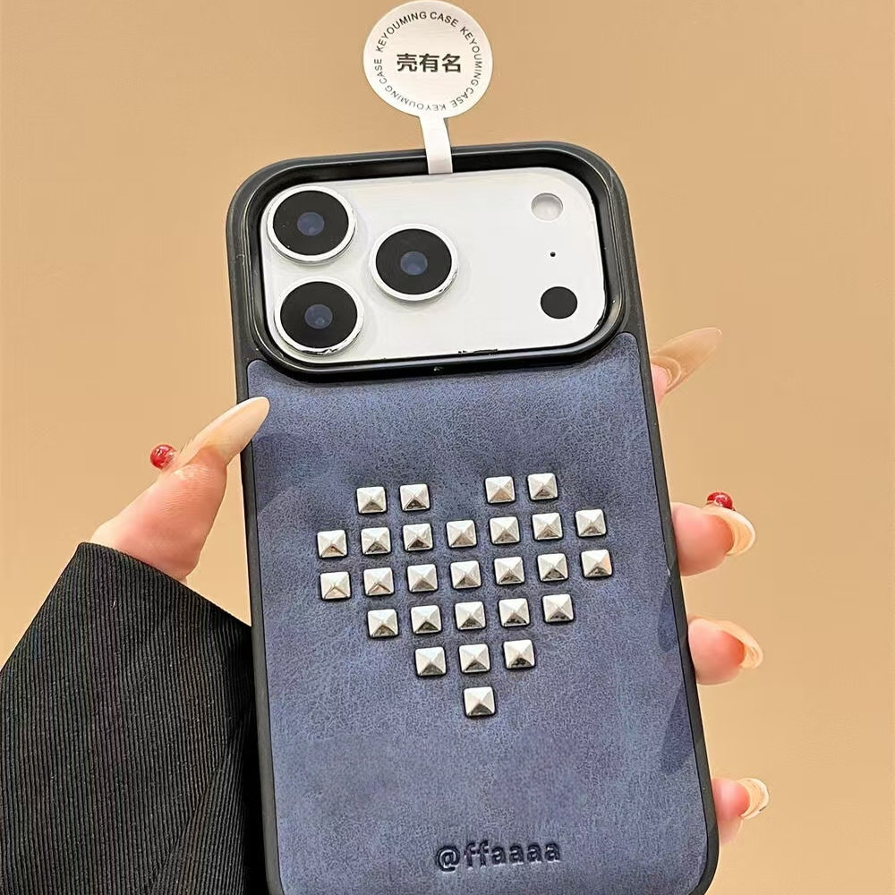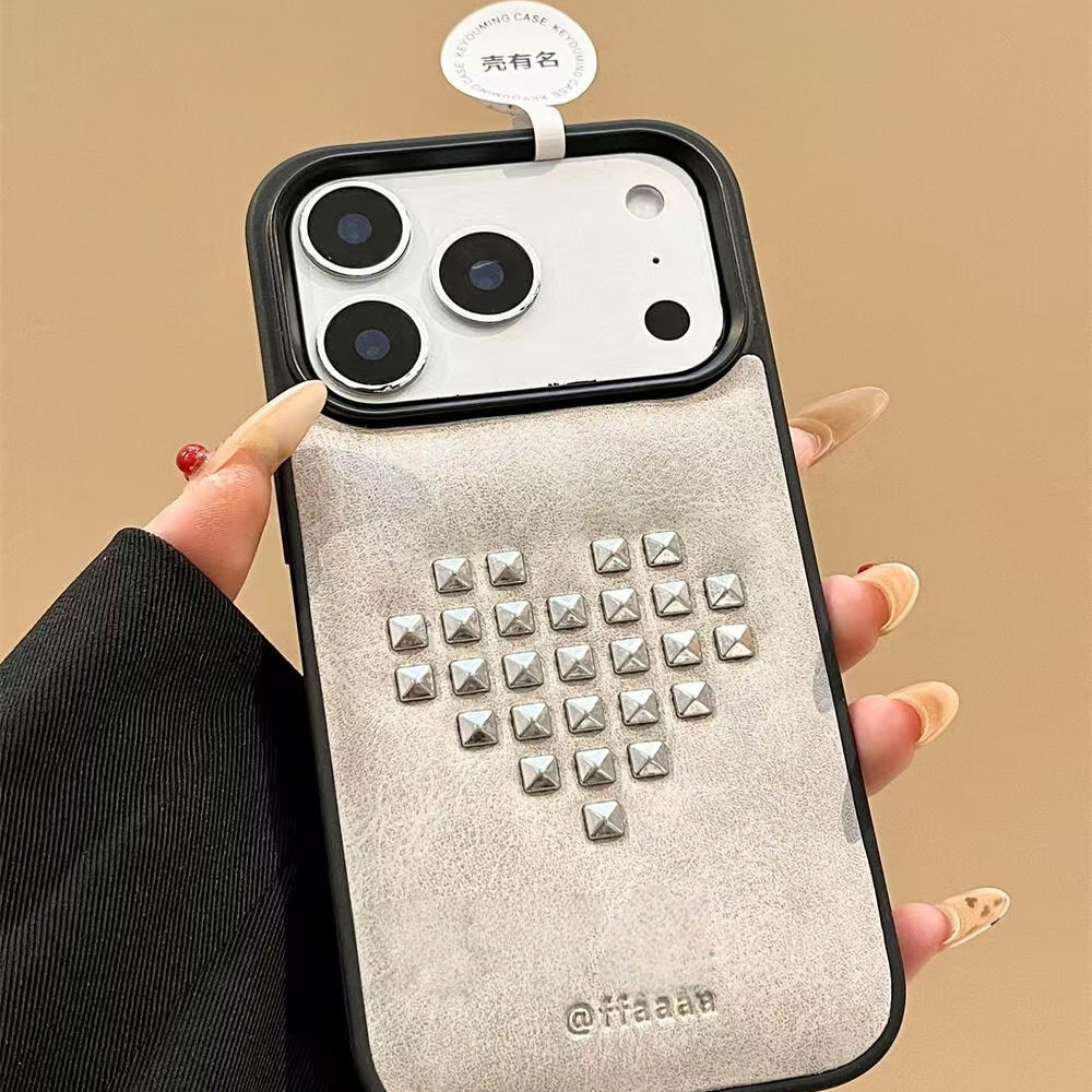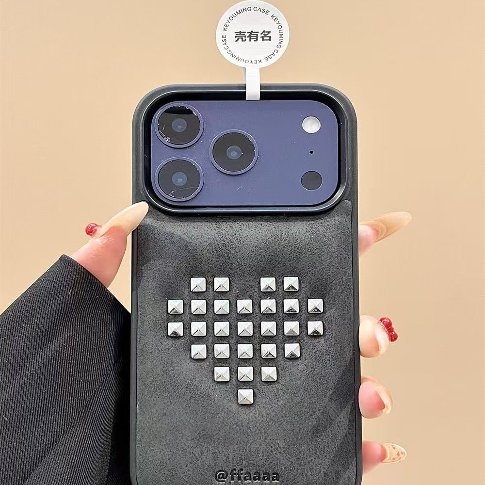 小众韩系黑框简约创意爱心铆钉适用iPhone17promax手机壳15新款17pro13创意全包防摔16pro超好看17保护套