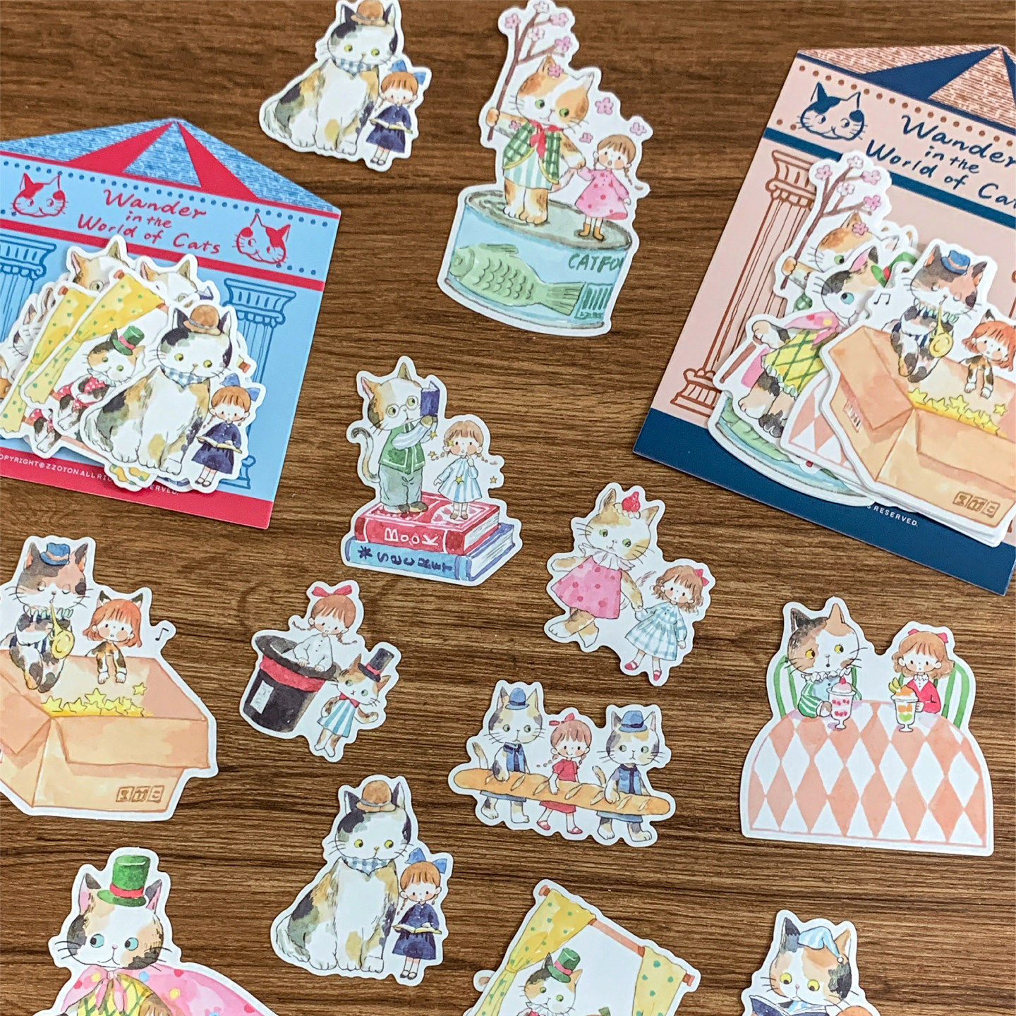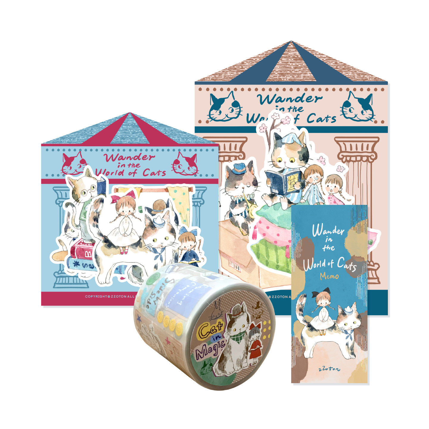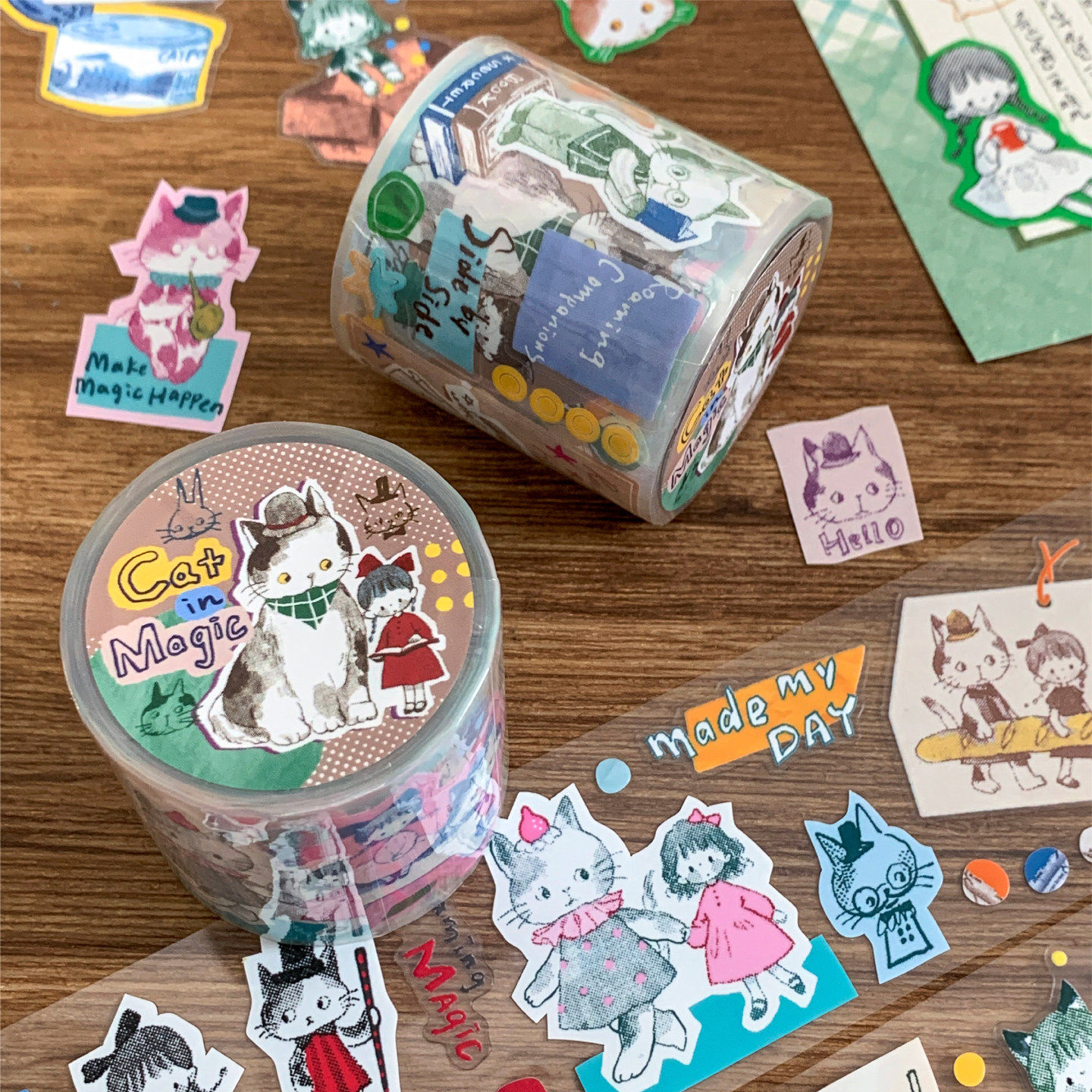 卓大王【猫的冒险】阿卓胶带异形便签贴纸包手绘水彩手帐文艺日系