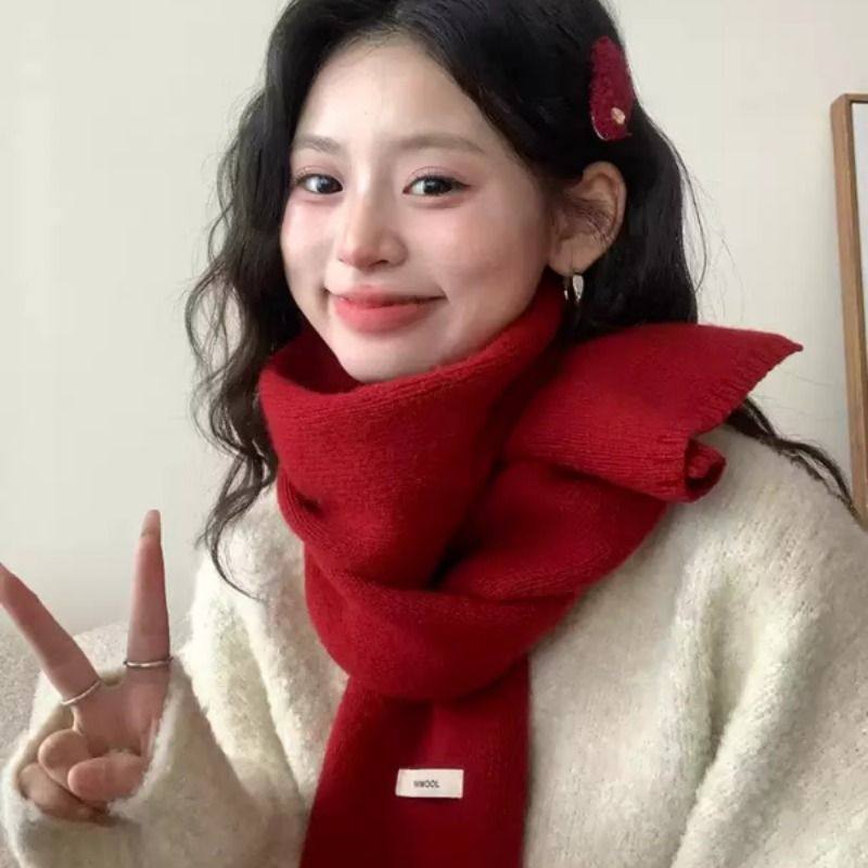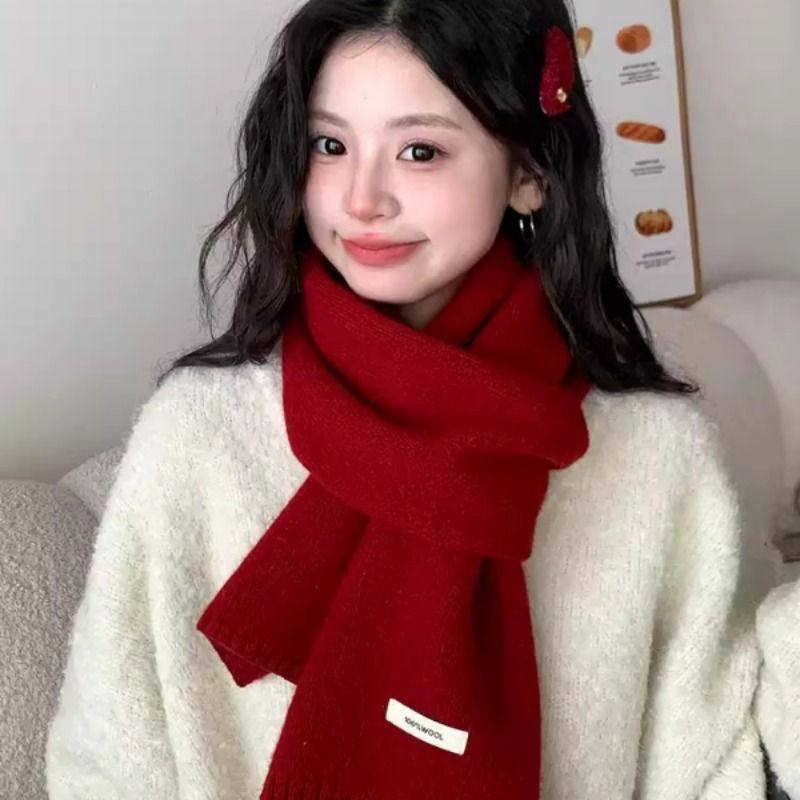 新款羊毛围巾女2025冬季氛围感针织羊绒紫色红色高级感蓝色绿色