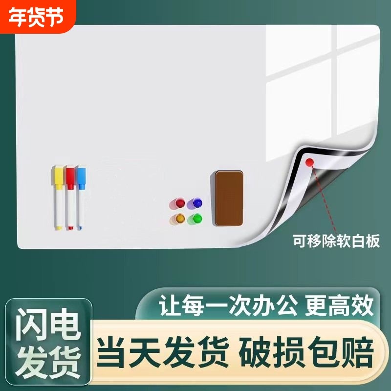 办公白板墙贴可移除书写板办公室不伤墙儿童家用教学画板涂鸦可擦写字板小黑板磁力贴照片墙吸附磁性墙面强力