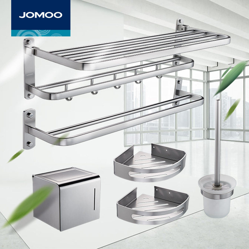 九牧卫浴五金挂件套装免打孔浴室浴巾架卫生间毛巾架太空铝置物架