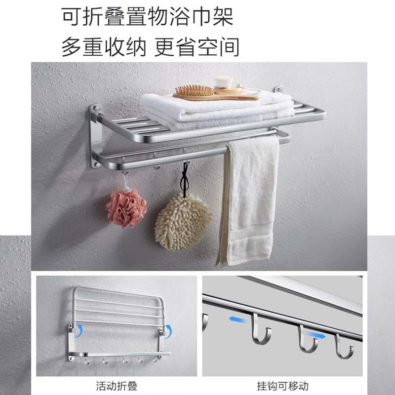 【谢霆锋推荐】佳帮手毛巾架免打孔浴室卫生间置物架一体折叠套装