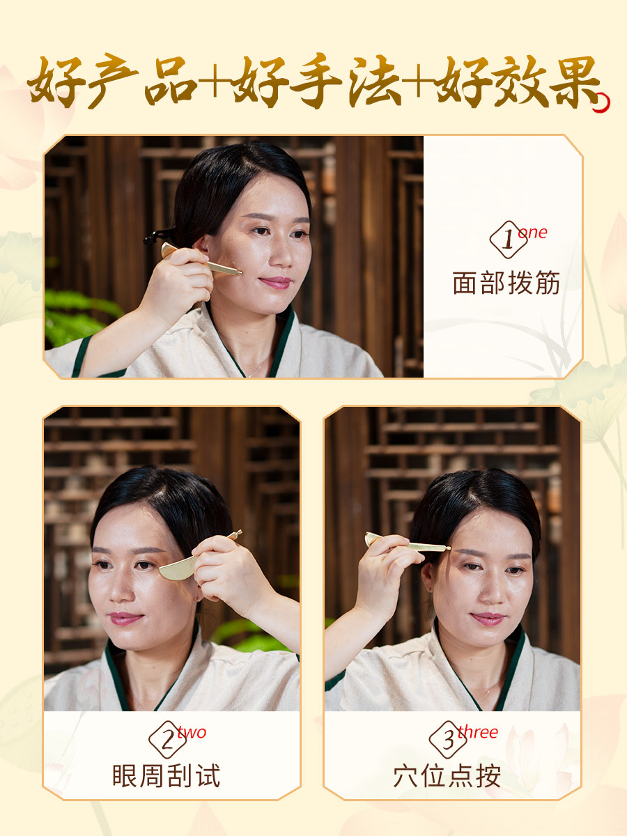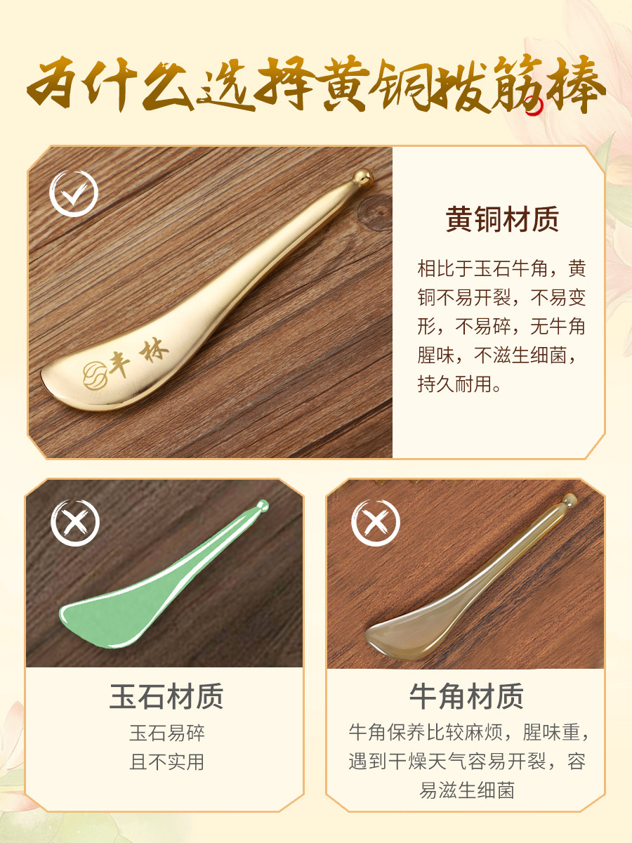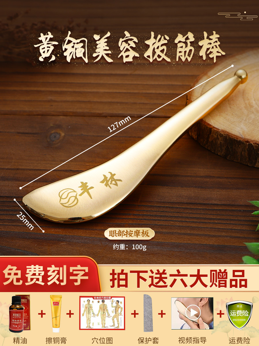 丰林纯黄铜拨筋棒美容棒面部通用板刮痧棒眼周按摩专用纯铜牛角