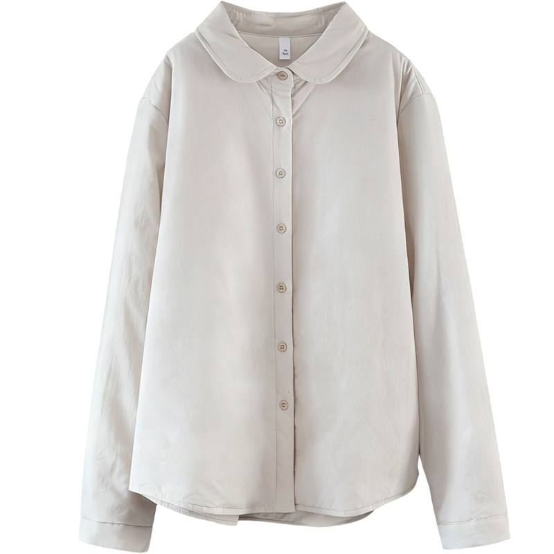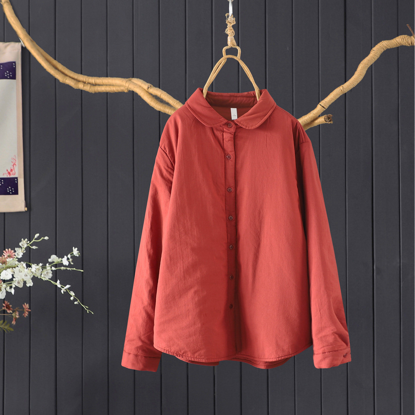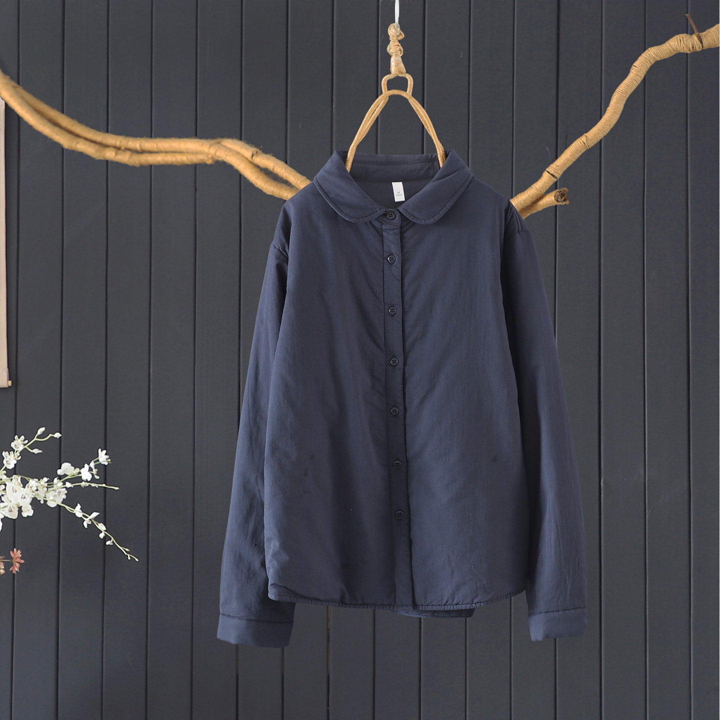 冬季简约文艺翻领长袖夹棉款衬衫上衣显瘦纯色打底衬衣棉衣棉服女