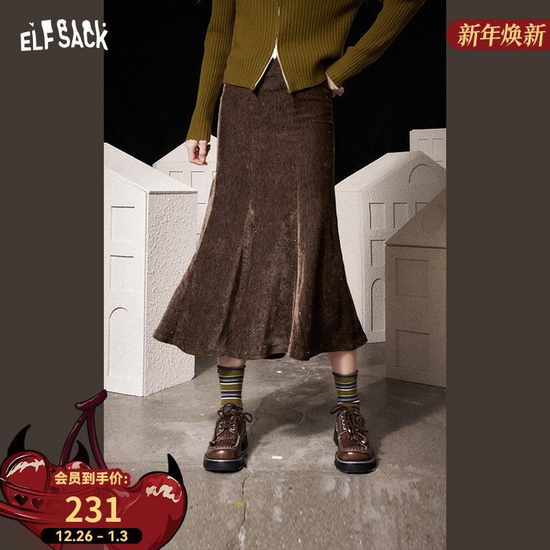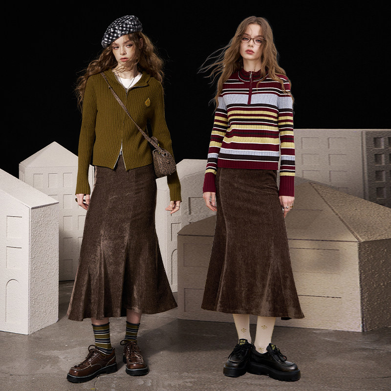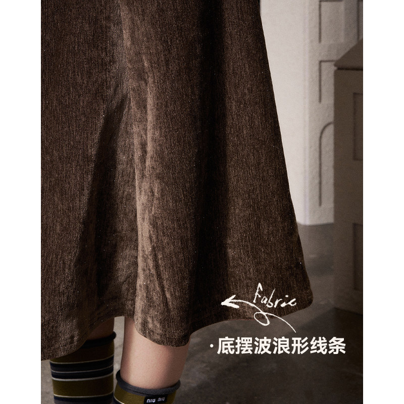 妖精的口袋美拉德a字丝绒半身裙女2025年冬季新款复古咖色鱼尾裙