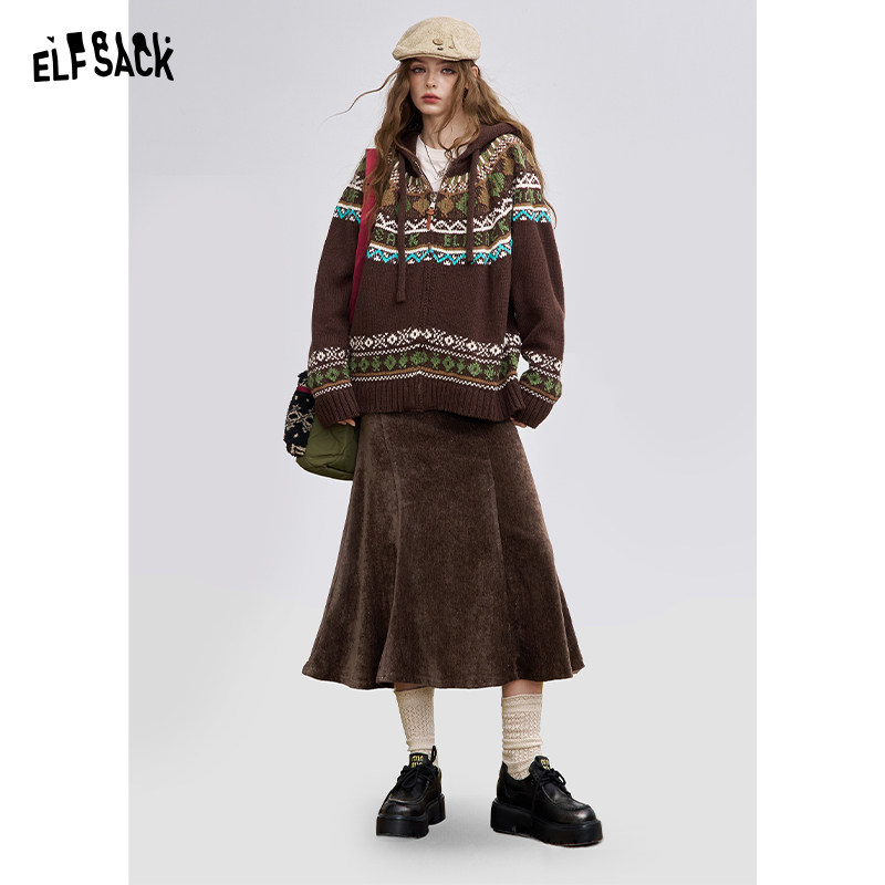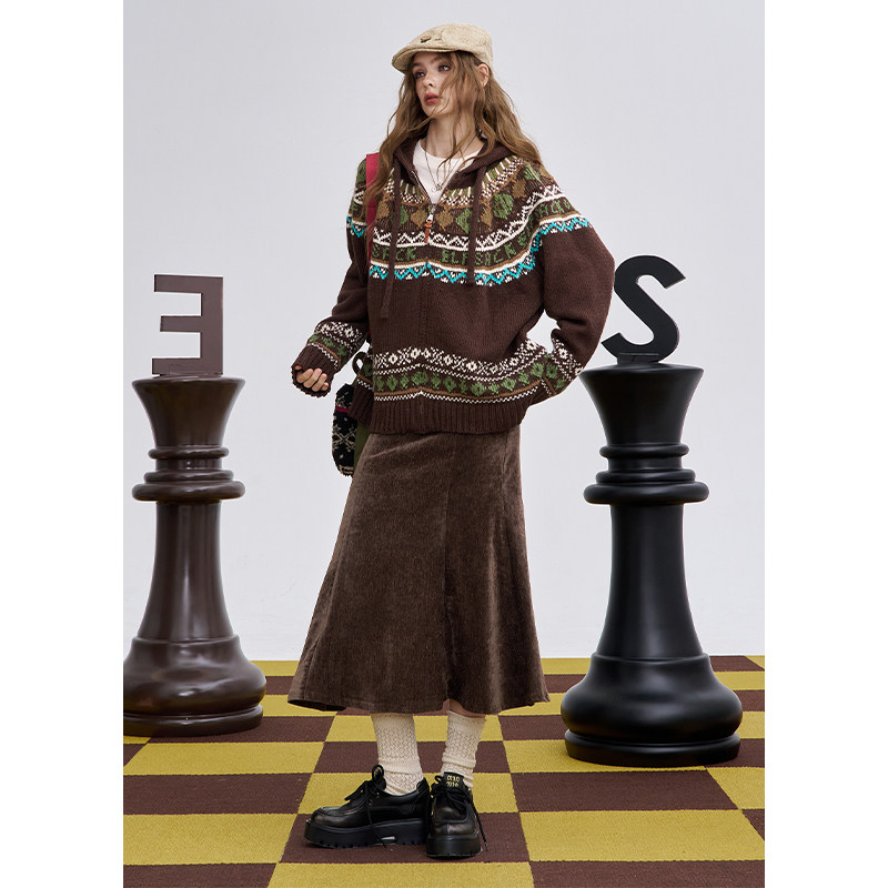 BANANA BABY2025年秋冬新款提花针织女日系碎花雪纺长款半身裙