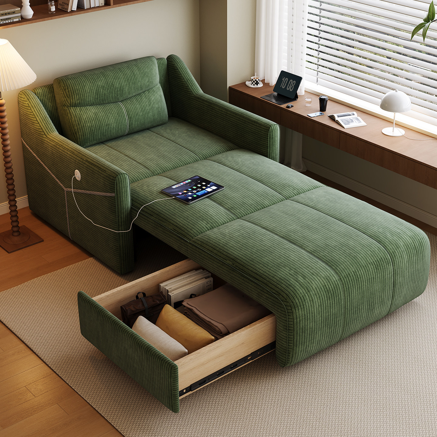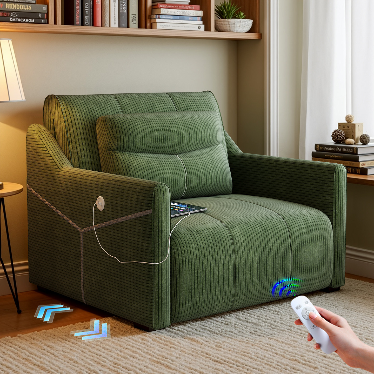 司朴莫代尔多功能电动沙发床客厅小户型书房可伸缩灯芯绒懒人沙发