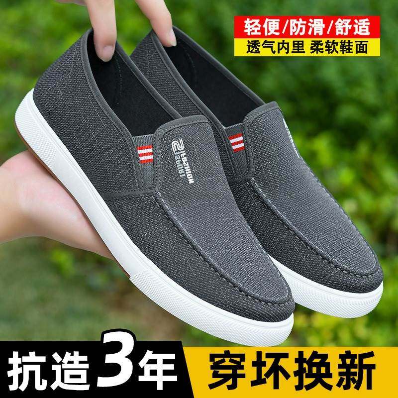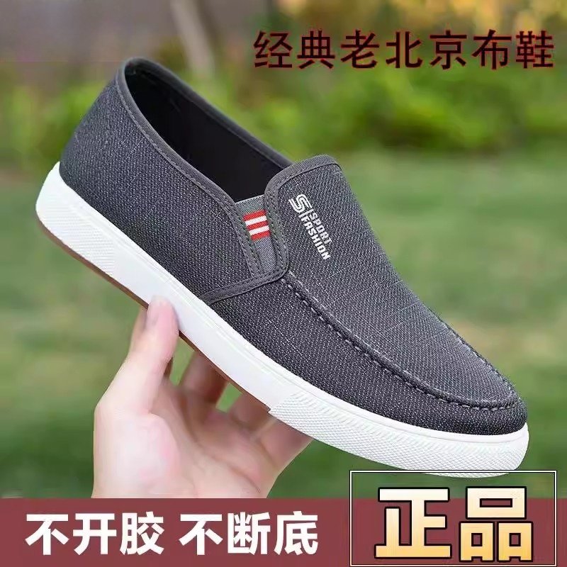 2023新款夏季老北京布鞋男款透气帆布男士牛津底工作一脚蹬休闲鞋